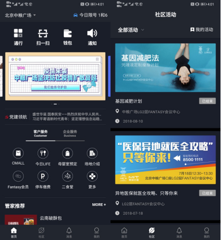 依托线上科技体系,在高效的同时最大限度的避免了人员直接接触,同时,中粮广场也依托自身多元服务和业态的组合,在满足客户办公、生活、社交基础上最大限度降低疫情风险。广场一层商业配套汇集星巴克、淮扬府、小吾厨房等优质品牌,为客户提供商务洽谈、宴请的优质场所;地下一层COFCO LIFE中粮生活,情景嵌入式餐饮街区、艺术展厅,为客户提供一个就餐、艺术欣赏的好去处;地下二层COFCO FANTASY为共享办公、健身房、SPA、书吧、水吧、小剧场,为客户提供一个自由办公、健身、休闲空间。