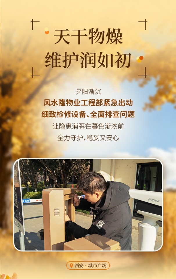 夕阳渐沉,风水隆物业工程部紧急出动,细致检修设备、全面排查问题,
